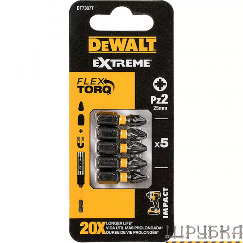 Набір біт DeWALT DT7387T зі шліцем Pozidriv, розмір головки - Pz2. Набір виконаний з високоякісної сталі для твердості і довговічності.