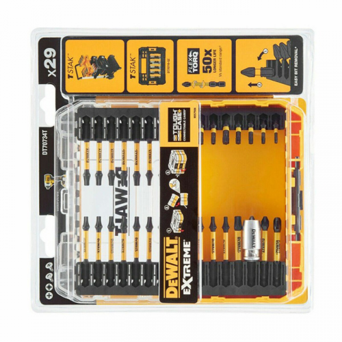 Набір біт EXTREME FlexTorq DeWALT DT70734T - це універсальний та надійний комплект, розроблений для професійних майстрів і домашніх умільців, які шукають високоякісні інструменти для щоденного використання. Біти виготовлені з міцної сталі, що забезпечує їхню довговічність і стійкість до зношування, навіть при роботі з твердими матеріалами, такими як метал або бетон. Точна форма біт гарантує надійне зчеплення з кріпильними елементами, мінімізуючи ризик вислизання або пошкодження шурупів, що особливо важливо для точних і акуратних робіт.