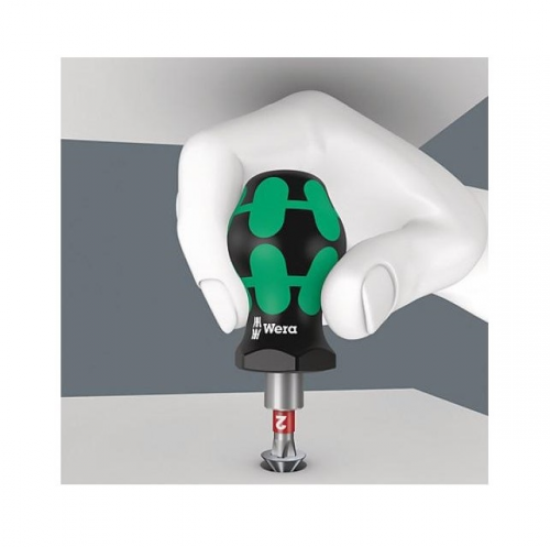 Коротка ручка-бітотримач 1/4"×54мм WERA 05008880001 для важкодоступних місць. Двокомпонентна ручка Kraftform з практичним поєднанням м'яких і твердих зон забезпечує впевнений хват рукою і точні маніпуляції. Робочі кінці виготовлені за тією ж технологією, що і біти Wera. Спеціальна обробка поверхні для особливого захисту від корозії і оптимальної посадки в голівці гвинта. Шестигранний край ручки запобігає набридливому перекочуванню викрутки на робочому місці.