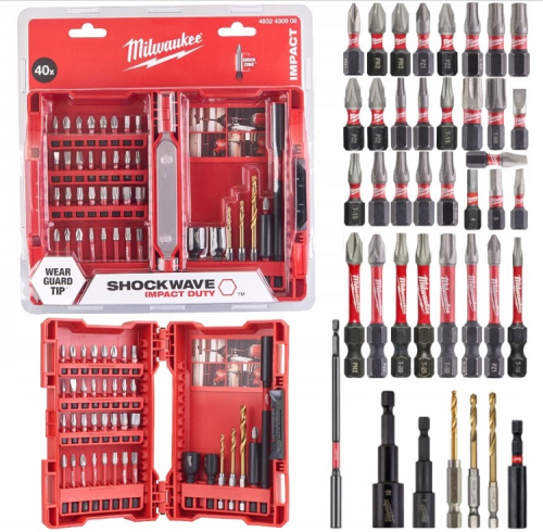 Набір біт і свердел SHOCKWAVE MILWAUKEE 4932430908 виконаний зі спеціально розробленої конструкційної сталі Milwaukee®. Приладдя Shockwave Impact Duty™ ідеально підходить не тільки для робіт імпульсним гайковертом, а також для будь-яких видів робіт зі свердління та закручування. Геометрія Shock Zone розроблено для гнучкості. Геометрія Shock Zone збільшує до 30 разів більше тривалість терміну служби і поглинає більш ніж 3-кратний момент, що крутить, в порівнянні з іншими ударними бітами. Shock Zone зменшує тиск на накінечник насадки та знижує ризик поломки. Поєднання дизайну Shock Zone та спеціальної термообробки поглинають удари та роблять насадку більш еластичною. Компресійний кований накінечник забезпечує відмінну посадку в гвинтову головку.