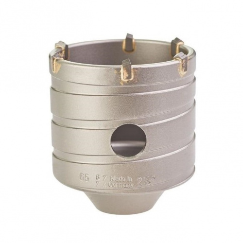 Коронка по бетону SDS-PLUS 65мм MILWAUKEE 4932344480 призначена для свердління отворів великого діаметру у різних типах цегляної кладки, бетону, каменю, залізобетону. Коронка MILWAUKEE з асиметричною конструкцією твердосплавних зубів виконує гладке та чисте свердління. Твердосплавні зубці, що виступають, зі скошеними краями запобігають заїданню. Коронка MILWAUKEE 4932344480 з діаметром 65мм може свердлити отвори глибиною 50 мм. Використовується разом з перфораторами без водяного охолодження.