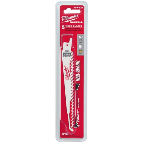 Полотно для шабельної пили 150мм MILWAUKEE 48005035 для швидкого врізання. NAIL GUARD захищає зубці при попаданні на цвях, збільшує зносостійкість та термін служби. Товщина леза 1,25 мм забезпечує хорошу міцність та довгий термін служби леза, роблячи його ідеальним для деревини із цвяхами або болтами. Агресивна геометрія 5TPi прибирає більше матеріалу за один хід, забезпечуючи більш швидке різання. Вигнута форма відмінно підходить для різання та доступу до обмежених просторів. Біметалічна конструкція дозволяє лезу гнутися, не ламаючись.