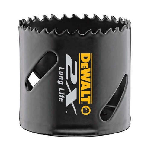 Ціфенбор-коронка біметалічна 51мм DeWALT DT8151L призначена для обробки сталі, нержавіючої сталі, алюмінію, латуні, міді, цинку, дерева. Міцна конструкція складається з зубців високоякісної сталі, міцно з’єднаних з масивною опорною пластиною. Інноваційна швидкозатискна система забезпечує безпроблемне зняття коронки. Здвоєний профіль ріжучого зуба виконаний з високоякісної сталі M3 (3% ванадію, 1,2% карбону, твердість 62-67 HRC), що знижує небезпеку утворення мікротріщин і поломки зубців. Досить глибока виїмка між зубами забезпечує швидке видалення стружки і високу продуктивність свердління. Якість пропила і стійкість безпосередньо залежать від вибору правильного числа обертів і застосування охолоджуючих засобів. Коронка біметалічна EXTREME LongLife володіє глибиною різу в 46 мм.