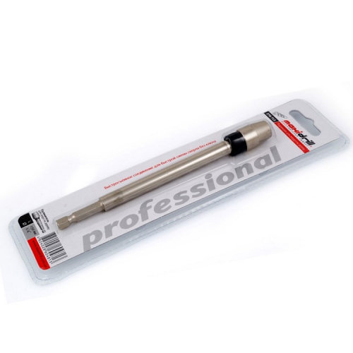 Подовжувач для пір'яних свердл MAXIDRILL 370-715 професійний, довжиною 150мм та діаметром хвостовика 1/4” мають швидкознімне з'єднання для швидкої зміни свердла без ключа. Застосовуються при свердлінні отворів у деревині на велику глибину та у важкодоступних місцях. Подовжувачі по дереву Maxidrill виготовлені із високоякісної вуглецевої сталі. Дані подовжувачі сумісні з пір'їними свердлами всіх розмірів. Шестигранний хвостовик із проточкою забезпечує надійний затиск у патроні дриля без прослизання.