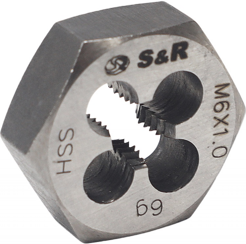 Плашка гексогональна 6мм S&R 111203006 використовується для нарізування зовнішньої різьби.