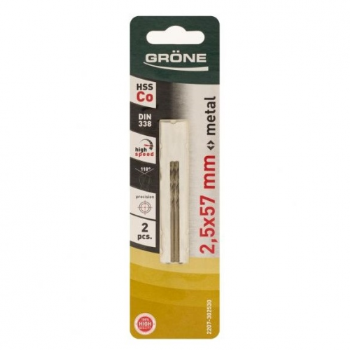 Свердло по металу GRÖNE 2207-302530 з подвійною спіраллю для кращого свердління рівних отворів без сколів та тріщин. Циліндричний хвостовик надійно кріпиться в патроні та не прокручується. Свердло GRÖNE 2207-302024 використовується для свердління металу, металевих листів та труб. Свердло виготовлене з високоякісної швидкорізальної сталі HSS з додаванням кобальту для більшого терміну експлуатації.