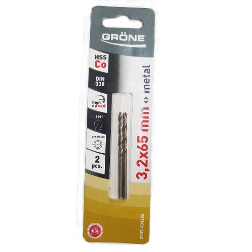 Свердло по металу GRÖNE 2207-303236 з подвійною спіраллю для кращого свердління рівних отворів без сколів та тріщин. Циліндричний хвостовик надійно кріпиться в патроні та не прокручується. Свердло GRÖNE 2207-303236 використовується для свердління металу, металевих листів та труб. Свердло виготовлене з високоякісної швидкорізальної сталі HSS з додаванням кобальту для більшого терміну експлуатації.