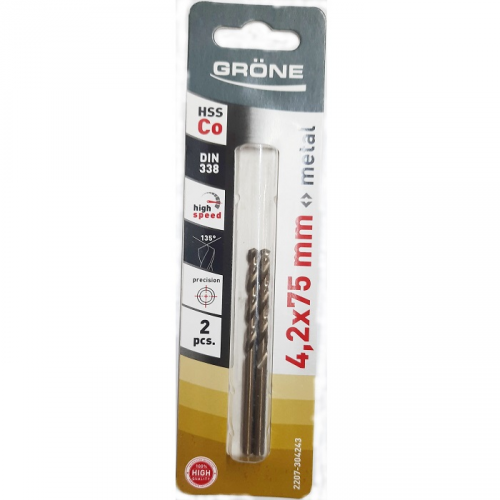 Свердло по металу GRÖNE 2207-304243 з подвійною спіраллю для кращого свердління рівних отворів без сколів та тріщин. Циліндричний хвостовик надійно кріпиться в патроні та не прокручується. Свердло GRÖNE 2207-304243 використовується для свердління металу, металевих листів та труб. Свердло виготовлене з високоякісної швидкорізальної сталі HSS з додаванням кобальту для більшого терміну експлуатації.