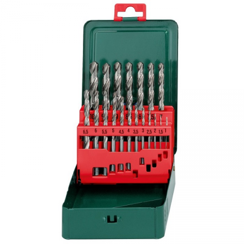 Набір свердл METABO 627157000 призначнний для свердління сталі, легованого й нелегованого сталевого лиття, чавуна, ковкого чавуна, чавуна зі сферичним графітом, металокераміки, нейзільбера, графіту, кольорових металів, пластику з опіром розриву до 900 Н/мм².
