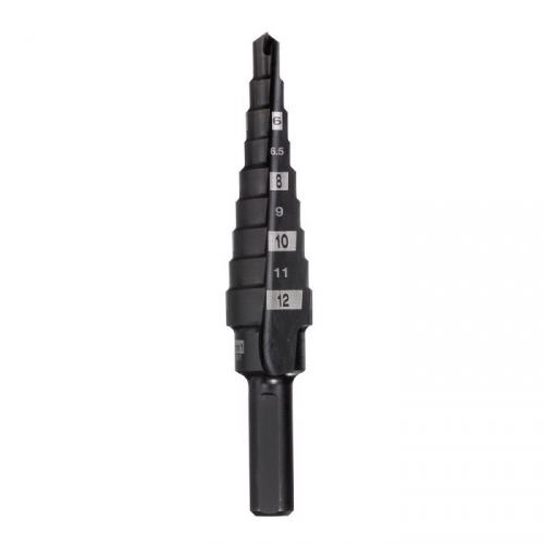 Спеціальний наконечник та геометрія ступінчастого свердла - зменшує ризик закушування свердла при використанні високошвидкісних акумуляторних дрилів і захищає матеріал від деформації.