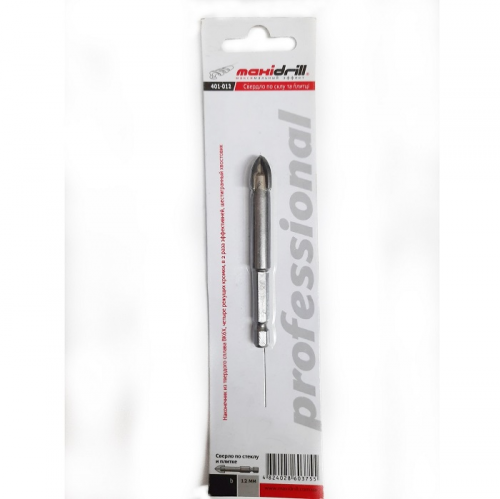 Наконечник свердла виготовлений із твердого сплаву ВК6Х. Проходження матеріалу також покращено за рахунок спеціального заточування ріжучих кромок. Шестигранний хвостовик стандартного розміру 1/4'' дозволяє надійно закріпити свердло в патроні дриля, запобігаючи його провертанню.