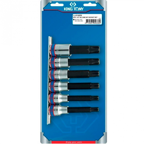 Набір торцевих носадок RIBE KING TONY 4116PR призначений для робіт з кріпленням, що має внутрішній профіль RIBE. Оправа виготовлена з легованої хром-ванадієвої сталі. Біти виготовлені з високоякісної сталі S2 для більшої надійності та довшого терміну експлуатації. Універсальний магнітний утримувач довжиною 180 мм дозволяє надійно та легко зберігати біти в одному місці. Використовуються на станціях технічного обслуговування (СТО), автосервісах та в автомайстернях.