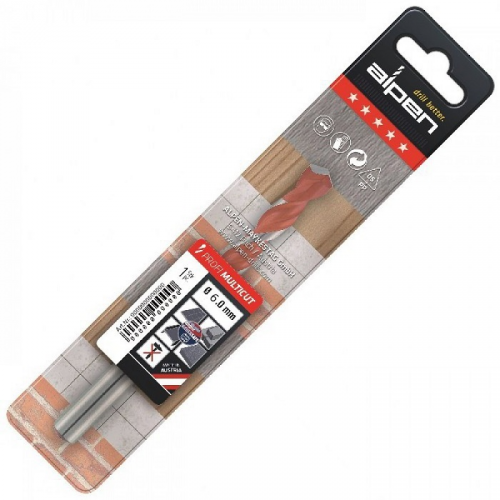 Свердло ALPEN 17200600100 з спеціальним методом заточування, який дозволяє свердлити в металі високої товщини з великою ефективністю. Спеціальне твердосплавне лезо з карбід вольфраму, розточене в 3 площинах, що дозволяє точно і швидко свердлити найрізноманітніші матеріали: сталь, підшипникову сталь, армований бетон, дерево, фанеру, пластмасу, керамічну плитку, цеглу, м’які метали. Воно також буде ідеальним при свердлінні в пустотілій цеглі або блоках типу Porotherm - свердлінням свердлом MultiCut (без удару) ви отримуєте отвір потрібного діаметру.