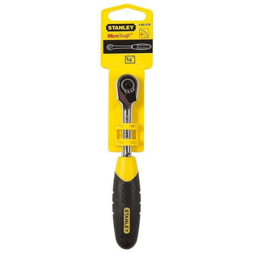 Рукоятка MicroTough 1/4'' з заскочковим механізмом STANLEY 4-85-576 - це високотехнологічний інструмент, розроблений для максимальної ефективності та зручності під час роботи з кріпленням. Ця рукоятка оснащена міцним та надійним заскочковим механізмом, який забезпечує швидке і плавне обертання, що значно підвищує продуктивність під час роботи в умовах обмеженого простору або коли потрібна висока точність. Завдяки 1/4'' приєднувальному квадрату, рукоятка сумісна з широким спектром головок та інших змінних насадок, що робить її універсальним інструментом для різних монтажних та ремонтних завдань.