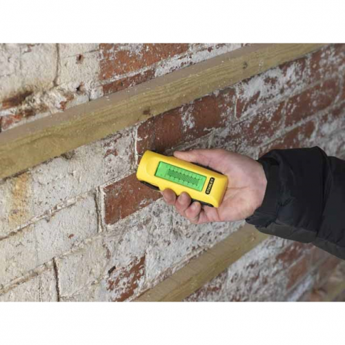 Вологомір для виміру вологості STANLEY 0-77-030 використовує контактний метод вимірювання за допомогою двох гострих штифтів, які занурюються в матеріал і визначають його вологість з високою точністю. Прилад здатен вимірювати вологість у діапазоні від 6% до 44% для деревини та від 0.2% до 2% для інших будівельних матеріалів. Великий LCD-дисплей забезпечує зручне зчитування даних, а компактний дизайн дозволяє легко носити прилад з собою і використовувати в будь-яких умовах.