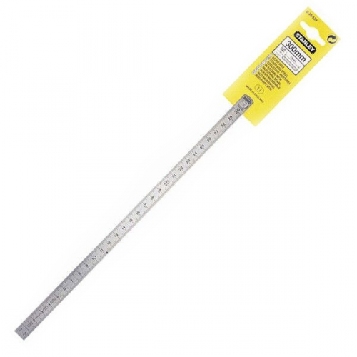 Лінійка гнучка 300мм STANLEY 1-35-524 з нержавіючої сталі, двостороння, з 2-ма метричними шкалами з діленнями через 1 мм на лицьовій поверхні і 0,5 мм з оборотної. Товщина лінійки складає 0,45 мм. Лінійка STANLEY 1-35-524 виконана з нержавіючої сталі з глибоким гравіюванням для тривалого терміну експлуатації. Поверхня, що не дає відблисків для зручності прочитування свідчень. Клас точності: II.