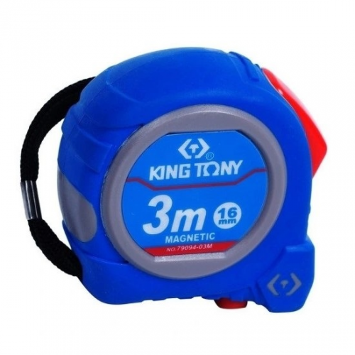 Рулетка KING TONY 79094-03C - вимірювальний інструмент високої точності, призначений для вимірювання лінійних об'єктів, креслення розмітки приміщень. Рулетка KING TONY 79094-03C з магнітним гачком та двома кнопками пошуку. Нейлонове покриття стрічки та 3-х заклепкове лезо для довшого терміну експлуатації. Ергономічний ударостійкий корпус виконаний з ABS+TPE. Кожна шкала 10 см спеціально позначена червоним кольором. Схвалення стандарту точності класу II ЄС. Рулетка проста та зручна у використанні. Надійність та тривалий термін служби.