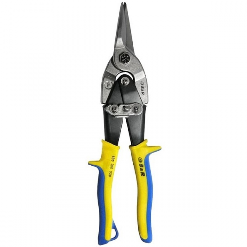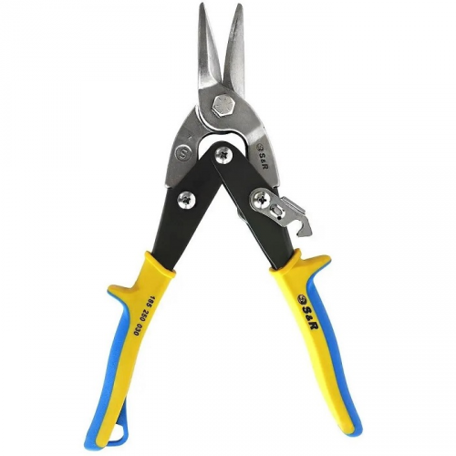 Ножиці по металу S&R 185250030 призначені для різання листового і профільного металу. Ножиці S&R 185250030 виконані з хром-молібденової сталі з твердістю 60-62 HRC. Використовуються для прямих і фігурних різів, для невеликих радіусів різу і коротких надрізів. Подовжені губки ножиць дозволяють різати швидше і акуратніше при тривалих прямих різах. Довжина ножиць становить 250 мм. Максимальна ріжуча здатність: нержавіюча сталь - 0,7 мм, сталь - 1,2 мм, мідь - 1,5 мм. Зубчасті ріжучі кромки запобігають прослизанню при різанні. Торсіонна пружина відкриває губки автоматично під час різання для більш швидкого різу і меншої втоми. Виготовлені з міцної легованої нержавіючої сталі. Механізм блокування керується однією рукою. Ергономічні та обгумовані рукоятки комфортно лежать в руці і не прослизають.