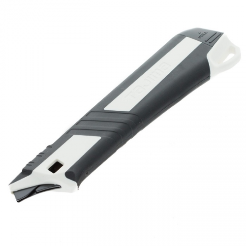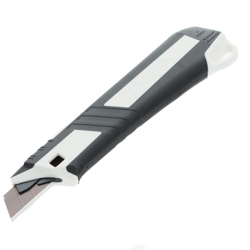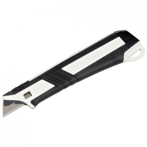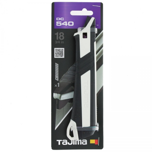Ніж сегментний Fin Cutter TAJIMA DC540N/W1 виготовлений для екстримальних умов на будівельному майданчику. TAJIMA - єдиний виробник, який виготовляє металеву основу для ножів з високоякісної інструментальної сталі. Основа ножа піддається багаторазовому гартуванню у масляній ванні, завдяки чому вона стійка до стирання та зношування під час експлуатації, стійка до падінь та механічних навантажень, які виникають під час використання на будівельному майданчику. Фірмовий дизайн та двокомпонентна рукоятка забезпечують комфортне користування ножем та захищають долоні від натирань.