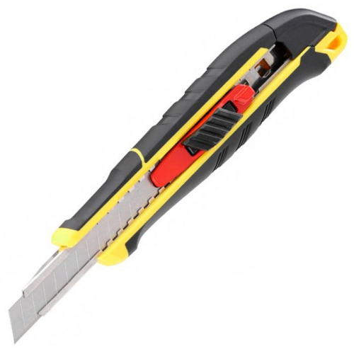 Ніж FatMax 9мм STANLEY FMHT10337-0 має ергономічний корпус, що виконаний з двох матеріалів - пластмаси та термопластичної гуми. Запатентована конструкція корпусу забезпечує кращу фіксацію леза для більшої точності різу. Велика зручна площадка для великого пальця призначена для зручності і кращого контролю ножа під час різання. Металева напрямна леза для безпечної роботи і довгого терміну служби. Проріз в задній знімній частині корпусу для зручності відділення використаних сегментів леза.