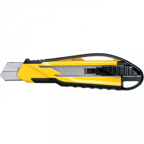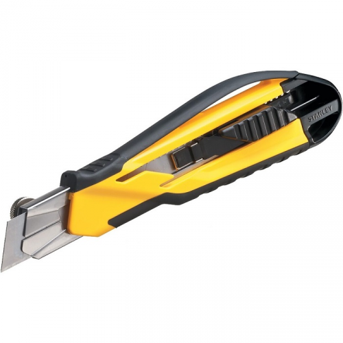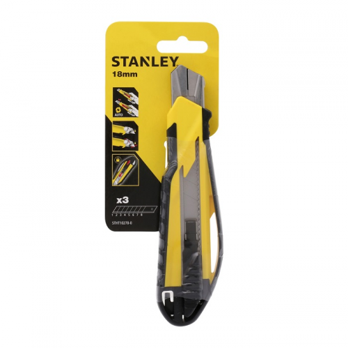 Ніж STANLEY STHT10270-0 з висувним лезом та з автоматичною системою зміни леза. Напрямні леза виготовлені з нержавіючої сталі для більшої міцності і тривалого терміну служби. Корпус DynaGrip з двох матеріалів для більшого комфорту. Магазин вміщує до 6 запасних лез. Ребристий фіксуючий гвинт, регульований великим пальцем, для надійної фіксації леза. Вбудована знімна заглушка призначена для відламування сегментів леза. Комплектація: Ніж. 6 сегментованих леза шириною 18 мм. В упаковці.