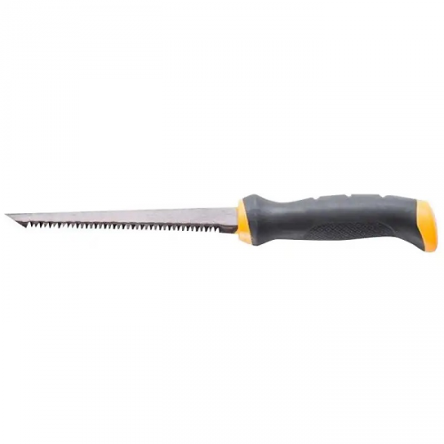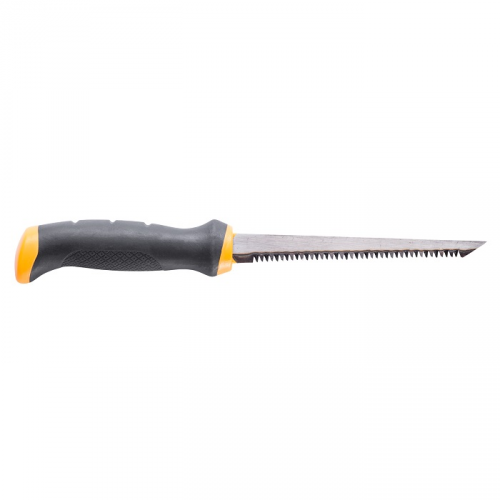 Ножівка по гіпсокартону HARDEX 2220-250023з комфортною пластиковою обгумованою рукояткою для більшого комфорту. Призначена для різання гіпсокартону. Полотно виготовлено з високоякісної сталі для кращого виконання роботи. Довжина виробу складає 230 мм. Загострений передній край полотна дозволяє легко проходити крізь гіпсокартон для створення в ньому отворів.