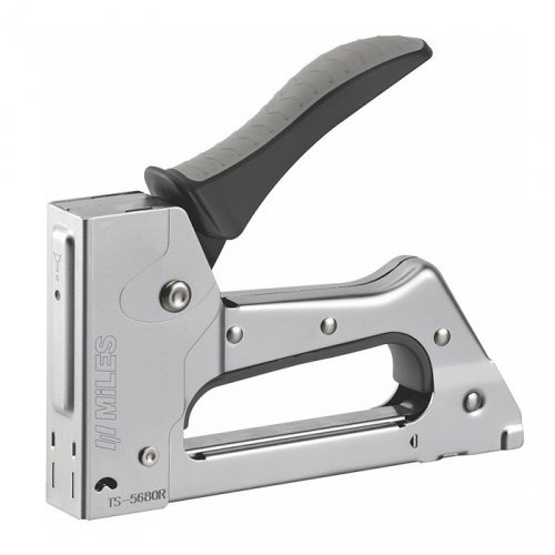 Степлер Miles TS-5680R/Z — будівельний степлер для забивання скоб. Також його ще можуть називати меблевий, оскільки саме для роботи з меблями найчастіше застосовують цей вид ручного інструмента. Дана модель має корпус з металу, що в свою чергу, вказує на якість та довговічність виробу. Прогумована ручка забезпечує зручність в роботі, оскільки степлер надійно тримається в руках. Завдяки спеціальному індикатору ви завжди будете бачити наявну кількість скоб та знатимете, коли вчасно їх замінити. Після використання ручку можна заблокувати та безпечно зберігати інструмент.