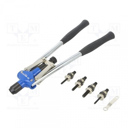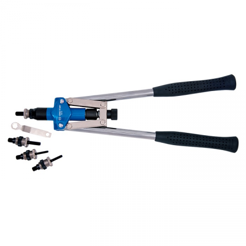Пістолет під різьбові заклепки KING TONY 79731 призначений для професійного використання у будівництві та в промисловості. Запатентована конструкція отворів кріплення для вирішення проблеми застрявання заклепки. Високоміцний алюмінієвий корпус та сталева трубка з гумовою ручкою зроблять виконання роботи комфортним та якісним. Конструкція важеля зменшує фізичну міцність для всіх розмірів заклепкових гайок. Пістолет під різьбові заклепки KING TONY 79731 з дизайном регулятора ходу для спрощеної точності. Заклепочник має 5 змінних різьбових оправок: M5x0.8, M6x1.0, M8x1.25, M10x1.5. Матеріал заклепок: алюміній, легована сталь.