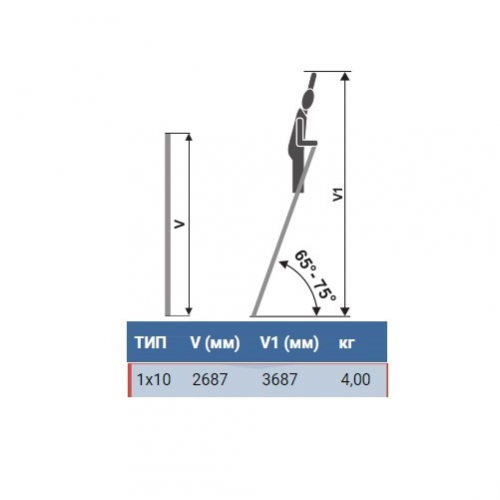 Оптимальний кут нахилу драбини, приставленої до стіни, повинен бути в діапазоні 65-75° щодо підлоги.