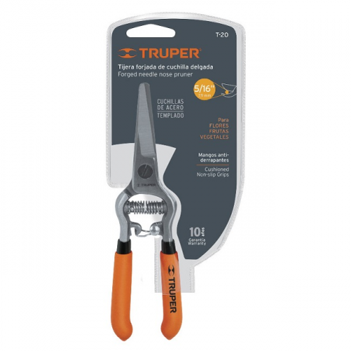 Секатор прямий TRUPER T-20з вузькими лезами. Використовується для роботи не тільки з виноградом, а також з квітами, малиною та іншими кущовими рослинами. Загартоване лезо дозволяє швидко та якісно виконати роботу. Зручні ручки мають гумоване покриття для надійного тримання в руці, не ковзають.