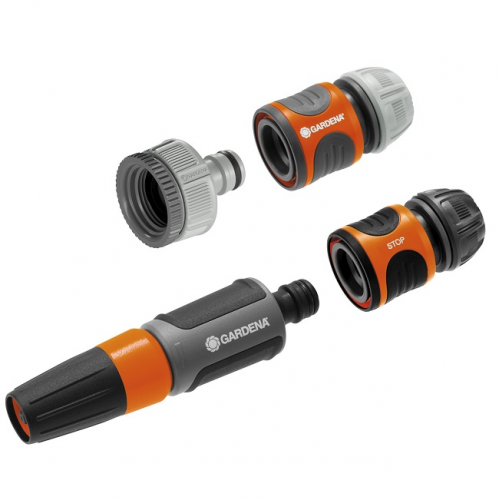 Накінечник Classic GARDENA 18295-20 + комплект конекторів для приєднання шланга та насадки для поливу. Комплект складається з усіх необхідних складових для швидкого підключення шлангу для подальшого поливу клумб, городу, кущів та дерев, тощо.