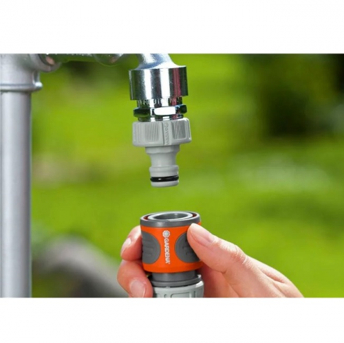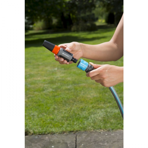 Наконечник для поливу - підключається до кінця шланга для поливу рослин або очищення предметів та навколишньої території. Струмінь можливо плавно регулювати, що дозволяє підлаштуватися під поставлене завдання. Воду можна перекрити безпосередньо на наконечнику, завдяки чому не потрібно витрачати зайвий час, щоб перекрити воду на крані.
