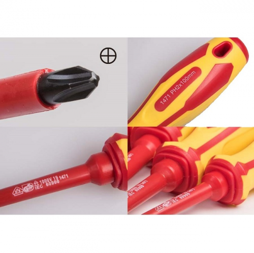 Використовується для роботи в мережах під напругою до 1000V. По всій довжині стрижня, аж до кінчика жала, накладений шар ізоляції, що діелектризує. Стрижень викрутки виготовлений із високоякісної сталі хромо-нікель-молібденового сплаву з високим вмістом ванадію. Матеріал виділяється на тлі аналогічних сплавів більшою міцністю, стійкості до корозійного впливу, сколам, механічним ушкодженням. Має непогану гнучкість. Переважно використовують у виготовленні першокласного ручного інструменту. Лезо хромоване, кінчик жала воронений.