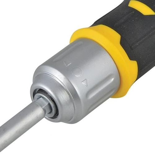 Викрутка-набір FATMAX реверсивна STANLEY FMHT0-62690 має вбудований в рукоятку відсік для зберігання біт. Двохкомпонентна рукоятка для надійного контролю інструменту і передачі великого крутного моменту. Трьох позиційний заскочний механізм з 40 зубами (з кроком 9°) для якісного виконання роботи. Стрижень, що знімається, з магнітним утримувачем для фіксації біт в робочому положенні.