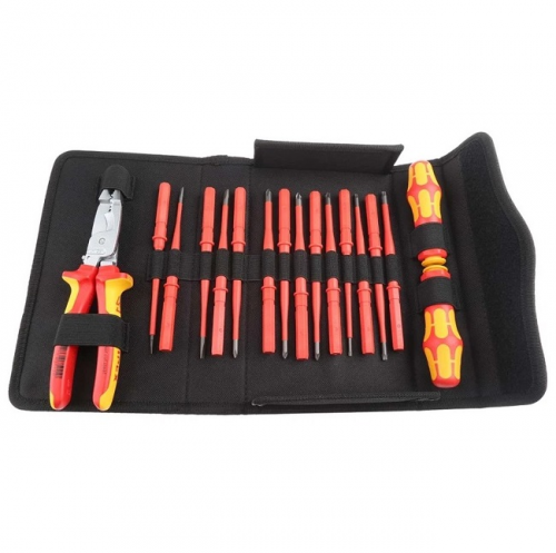 Набір викруток Kraftform Kompakt VDE WERA 05136027001 з завуженим стрижнем, що дозволяє працювати з розташованими в глибоких отворах гвинтами іпружинними затискачами. Дві ручки-утримувача VDE 817 для змінних викруток Wera VD. Ручка Kraftform для комфортної роботи. Набір зручно розташований в добротній сумці на пояс. Поштучна перевірка інструментів по стандарту IEC 60900 під напругою 10000В для безпечної роботи під напругуою до 1000 вольт.