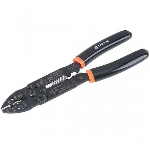 Кліщі для обтиску кабелю TACTIX TNKO401009IT0 - це міцний і надійний інструмент, який застосовується для зачистки та обтиску кабелю. Кліщі з індукційним загартуванням, завдяки чому, ріжуча кромка довше залишається гострою. Зачищення та різання: 10–26 AWG. Носик у вигляді плоскогубців дозволяє інструменту для зачистки дротів тягнути та затягувати провід у петлю. Обтискає ізольовані клеми.
