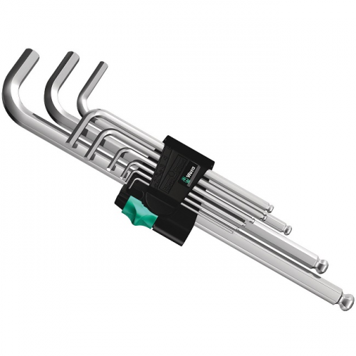 Набір Г-подібних ключів Hex-Plus WERA 05022087001 під внутрішній шестигранник в практичному затиску із зносостійкого матеріалу для тривалого надійного зберігання і одночасно простого вилучення ключів. Hex-Plus збільшує площу контакту з головкою гвинта. За рахунок цього до мінімуму знижується концентрація напруги в профілі, що практично виключає вірогідність руйнування головки гвинта. Кульковий наконечник на довгій стороні дозволяє впевнено працювати навіть в складних умовах монтажу. Ретельно виконане хромування ключів гарантує відмінний захист від корозії. Нанесене лазером, а тому зносостійке маркування розміру допомагає швидко відшукати потрібний ключ.