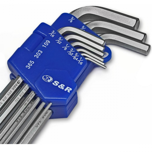 Ключі шестигранні з такими розмірами: 1/16''; 5/64''; 3/32''; 1/8''; 5/32''; 3/16''; 1/4''; 5/16''; 3/8''.