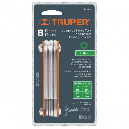 Набір ключів TORX TRUPER TORX-8 виготовлені з хром-ванадієвої сталі. Покриття ключів в три рази більш стійке до корозії. Зручна металева рукоятка для легкого зручного виконання роботи.