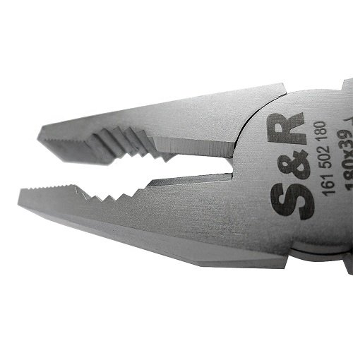Плоскогубці 1000V 180мм S&R 161502180 використовуються на станціях технічного обслуговування і складально-механічного виробництва для виконання робіт під напругою змінного струму до 1000 V. Двокомпонентні прогумовані рукоятки з діелектричного матеріалу. Обробка поверхні - гальванічне покриття фосфатування.