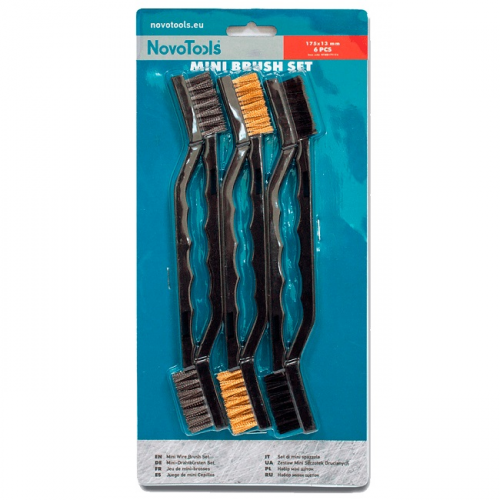 Набір міні щіток NOVOABRASIV NTWB17513/6 використовується для чищення металевих та інших поверхонь від усіляких забруднень, корозії, лакофарбових покриттів. Щітки по металу зручні в роботі, оскільки виготовлені з пластиковою ергономічною ручкою.