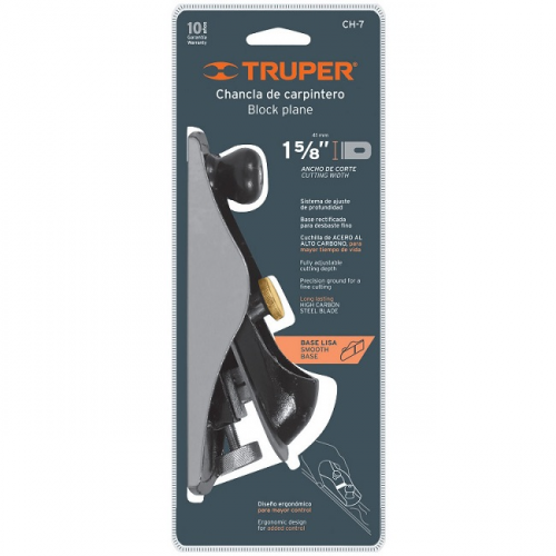 Рубанок столярний TRUPER CH-7 застосовується для щільницьких доводкових робіт і робіт у важкодоступних місцях дрібних і середніх заготівок. Лезо різця виготовлене з високовуглецевої сталі. Має регулювальне коліщатко для регулювання глибини стругання. Корпус виготовлений із високоякісного металу, який забезпечує довгий термін експлуатації.