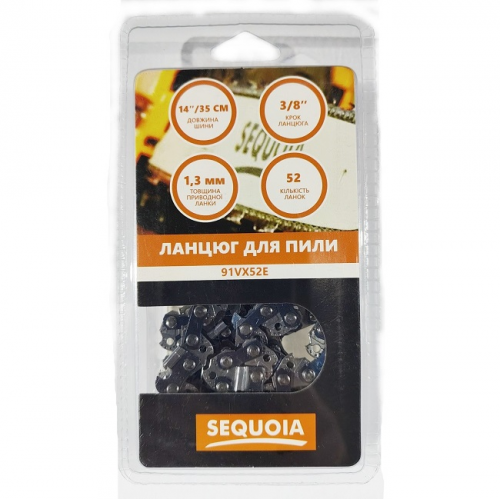 Ланцюг SEQUOIA 91VX52E володіє такими особливостями: Високопродуктивний ланцюг з низьким профілем. Вона ідеально підходить для професійних арбористів і озеленювачів, які вважають за краще використовувати легкі ланцюгові пили. Ріжучий «получизель» зі зниженою вібрацією забезпечує агресивний ріжучий край, який довше залишається гострим.