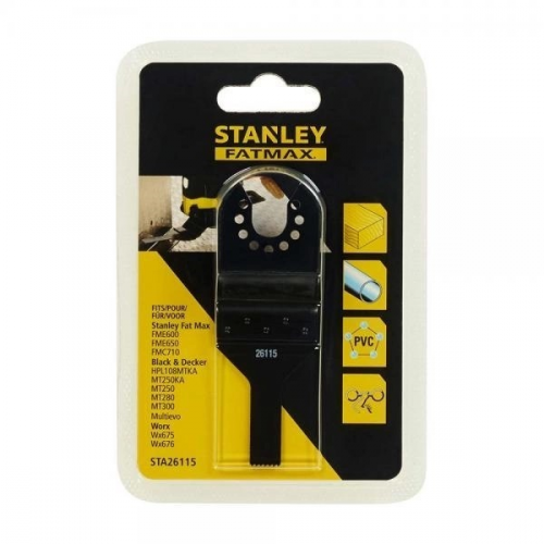 Полотно пильне занурювальне STANLEY STA26115 для багатофункціонального інструменту MT300KA. Призначене для розрізання, занурювального пиляння та різання врівень деревини, пластиків, тонкостінних труб та профілів із кольорових металів.