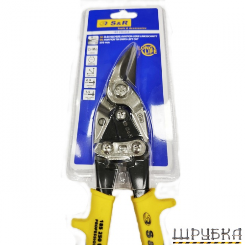 Ножиці по металу S&R 185250010 призначені для різання листового і профільного металу. Тип різу - лівий різ. Матеріал - хром-молібденова сталь. Особливості конструкції - твердість сталі 60-62 HRC.