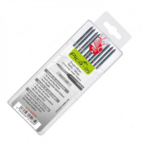 Запасні графітові жала для PICA Dry PICA 4030 - базовий універсальний графітовий стрижень 2В унікальна розробка фірми PICA, робить маркування можливим майже на всіх поверхнях - цегла, бетон, кераміка, метал, іржавий метал, пластик, скло, граніт, гума, дерево та багато інших матеріалів незалежно від того, чи є вони сухими або вологими, глянсові чи матові, запилені або масляні.