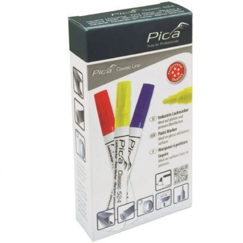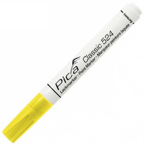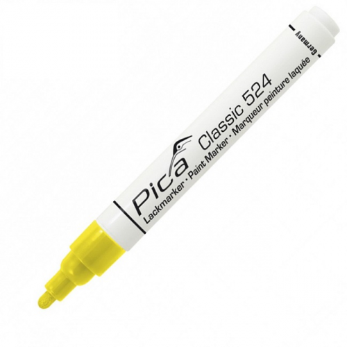 Маркер промисловий Industry Paint Marker PICA 524/44 - це універсальний маркер жовтого кольору для широкого застосування. Особливістю моделі є рідкий наповнювач. Завдяки рідкій фарбі, використовується 100% об'єму контейнера. Завдяки рідкому чорнилу у даних маркерів високий ресурс для використання, саме тому вони називаються Industry Paint Marker. Спеціальне чорнило маркера призначене до використання у складних умовах, воно має високі перекриваючі властивості, дуже стійке до дії ультрафіолету, до впливу води, та надстійке до звичайного стирання та стирання при механічних навантаженнях, наприклад в промислових цехах чи на виробництві. Маркер придатний до використання на більшості матеріалів, дана лінійка налічує шість різних кольорів. Чорнило маркера розроблено суворо до екологічних норм і не містить шкідливих їдких сполук.