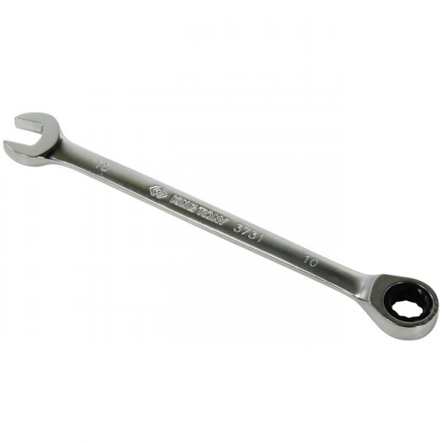 Ключ комбінований 10мм тріскачка KING TONY 373110M - ручний інструмент для відкручування або закручування гайок та болтів. З одного боку ключа зів під шестигранний профіль, з іншого боку – 12-гранне накидне кільце з храповим механізмом. Інструмент використовується в автосервісі для роботи з різьбовим кріпленням у важкодоступних місцях вузлів та механізмів.