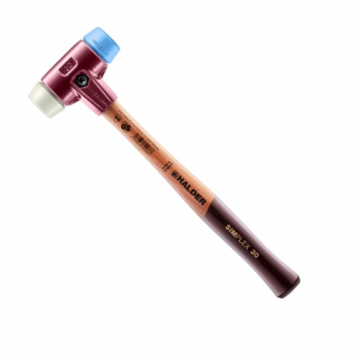Молоток щадний SIMPLEX HALDER 3018.030 з блакитною м'якою вставкою TPE (серія 3201) є найм'якшою вставкою в лінійці SIMPLEX і забезпечує сильну амортизацію при роботі, що вимагає легкого дотику. На відміну від звичайних гумових молотків, він не залишає небажаних чорних плям.