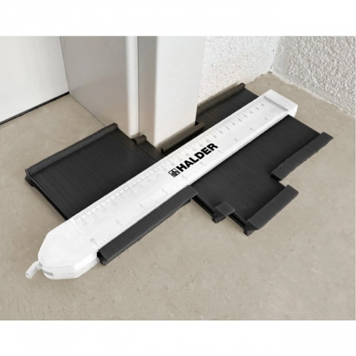 Окремі зубці контурної лінійки можна зафіксувати, що полегшує роботу, контур придмету можна легко та точно скопіювати, наприклад, на дверних коробках та трубах опалення.